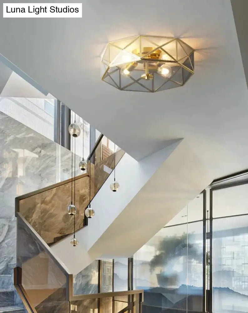 Nordic Simple Room Living Room Copper Round Ceiling Lamp