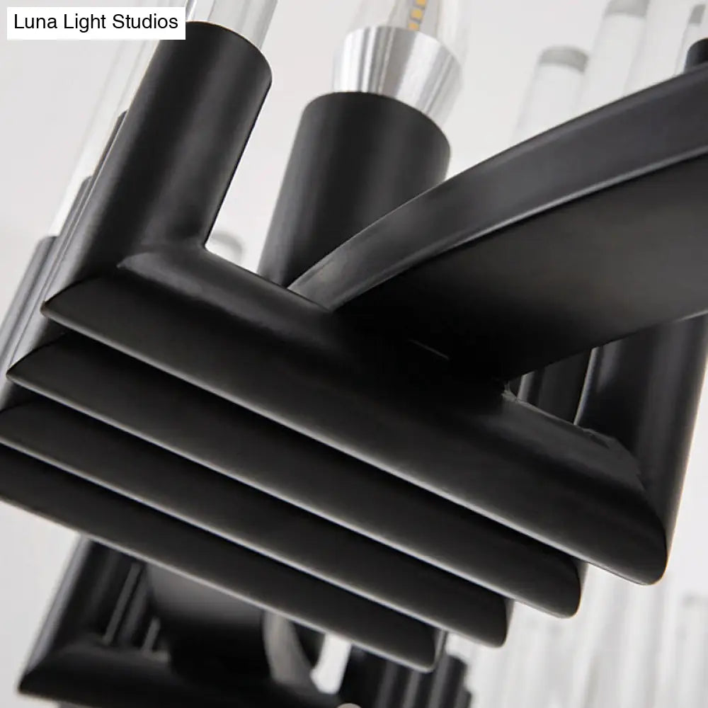Contemporary Circular Iron Chandelier Lamp with Crystal Tube - 6/8 Lights Ceiling Light Fixture in Black