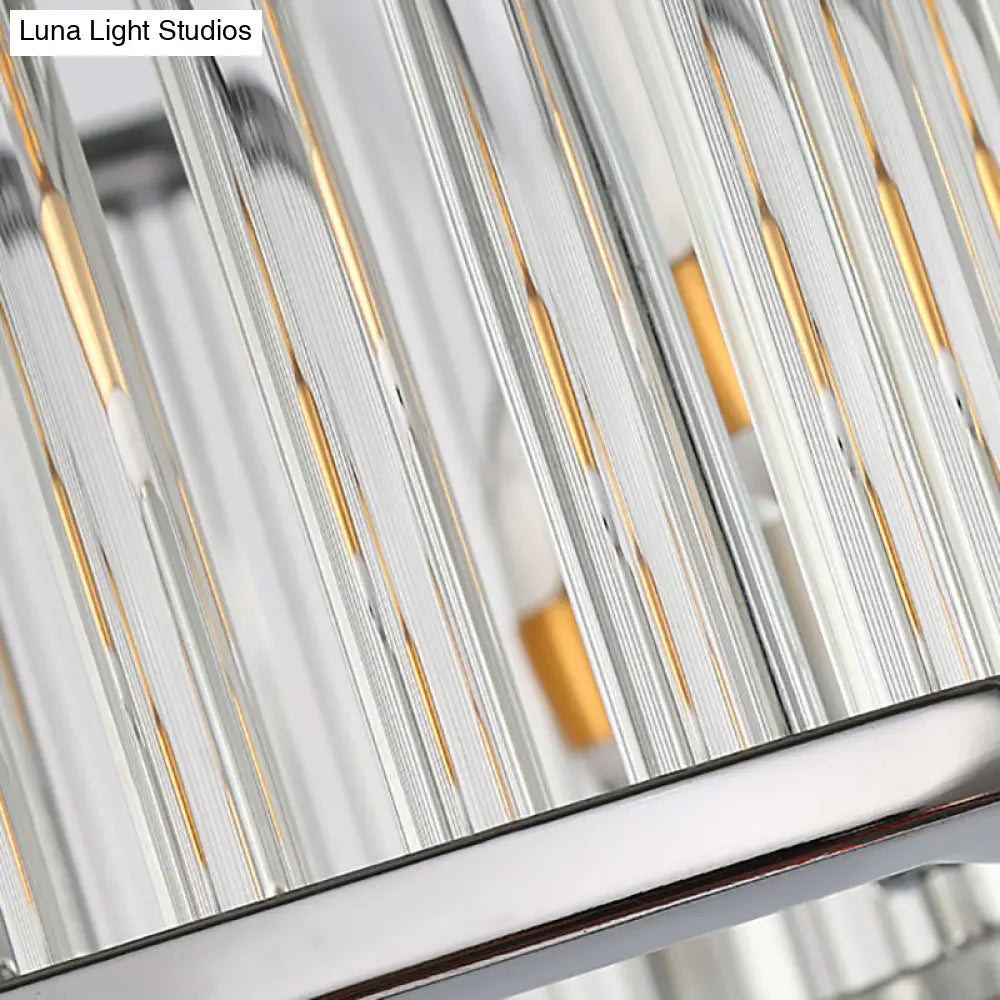 Hexagon Chrome Pendant Chandelier with Crystal - Modern Metal Hanging Lamp for Living Room