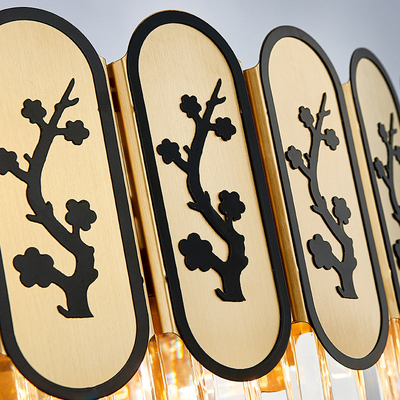 Modern Round Chandelier with Flower Pattern, Crystal and Metal Hanging Light for Bedroom - Brass Finish