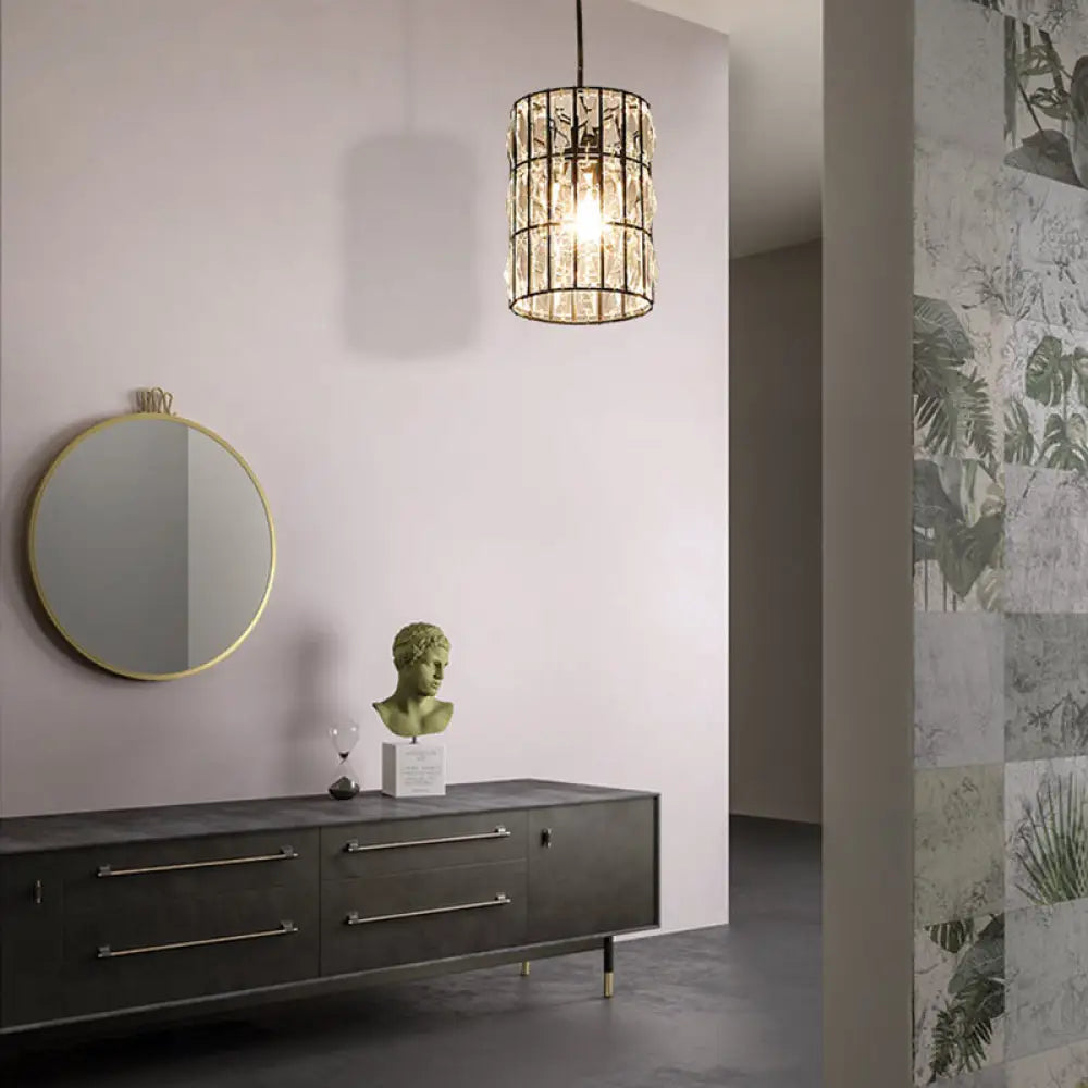 Modern Black Crystal Pendant Lamp with Clear Cylindrical Suspended Light for Living Room