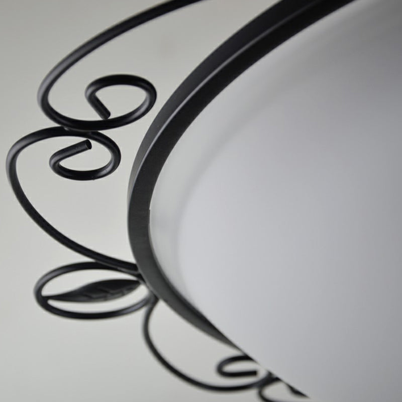 Traditional Black Dome Flush Mount Ceiling Light with 3 Opal Glass Heads and Swirled Decor