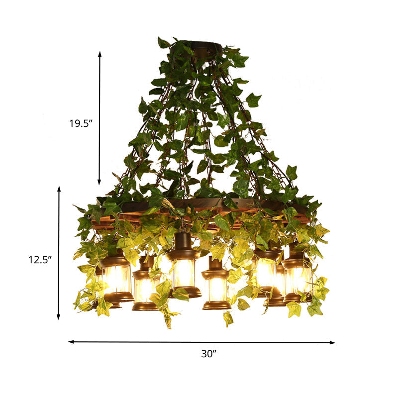 Industrial Green Lantern Wooden Chandelier - LED Restaurant Ceiling Light (3/6/8 Heads), 21.5"/27"/30" Width