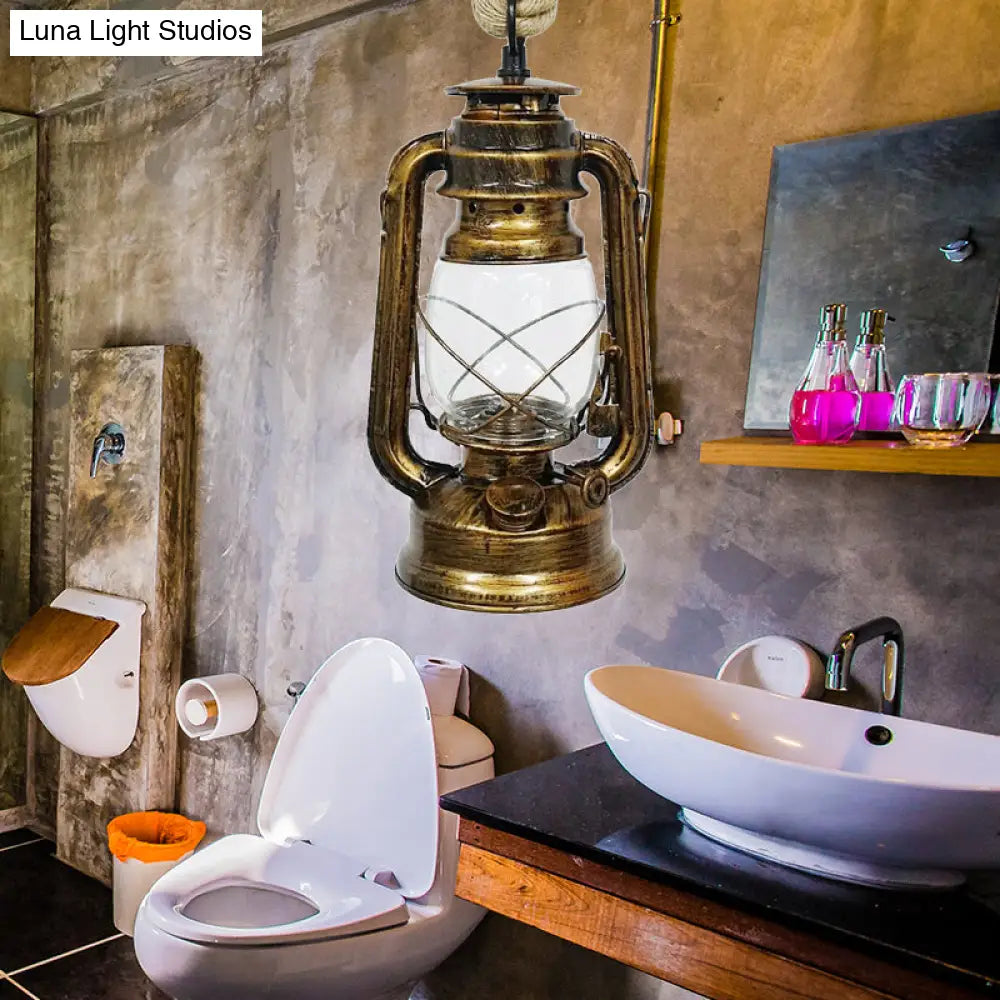Industrial Clear Glass Pendant Ceiling Light for Coffee Shop - Black/Bronze/Antique Brass Finish