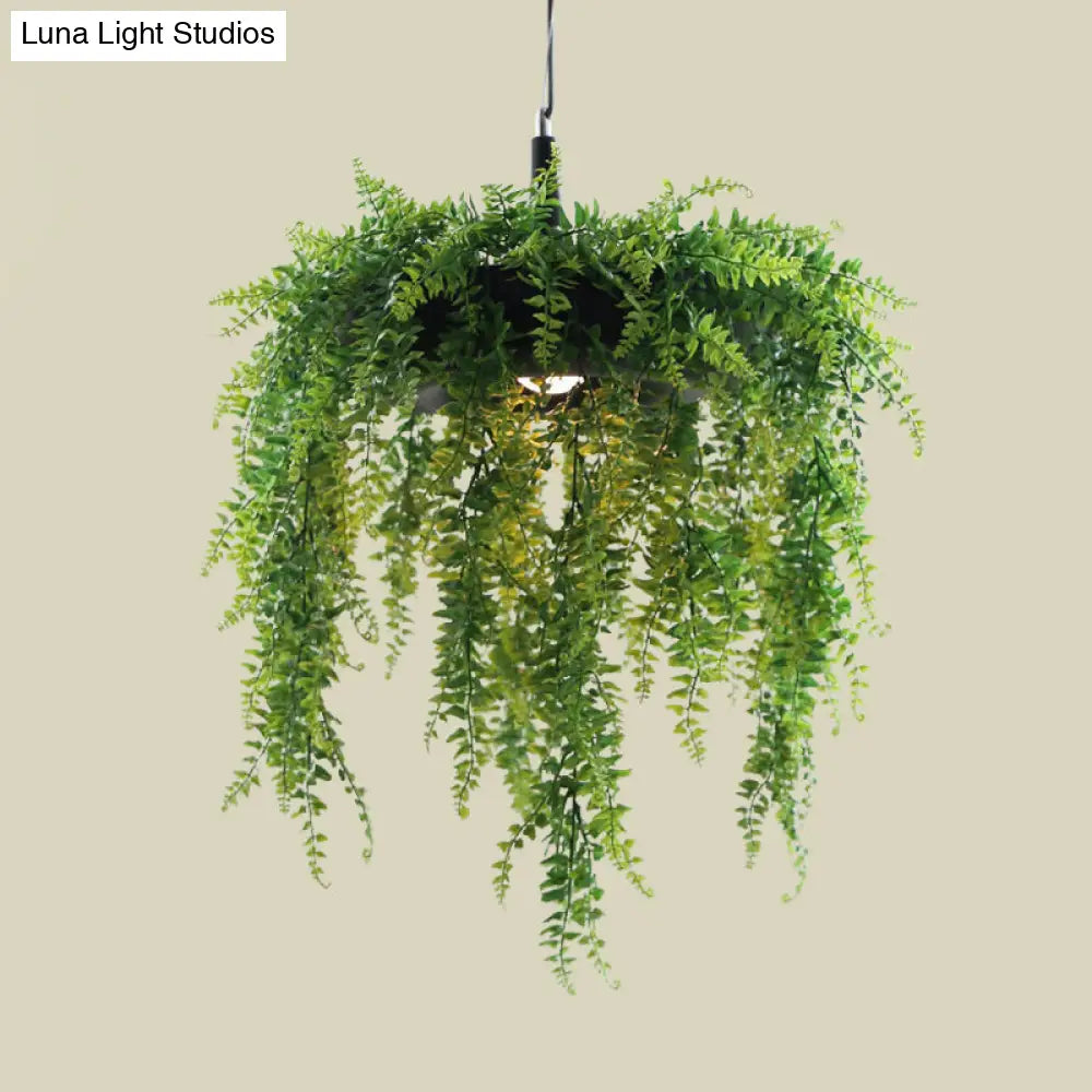 Loft Style Metal Pendant Lighting with Donut Design | 1-Bulb Hanging Ceiling Light for Balcony | Black/White Finish | Artificial Vine Deco Included