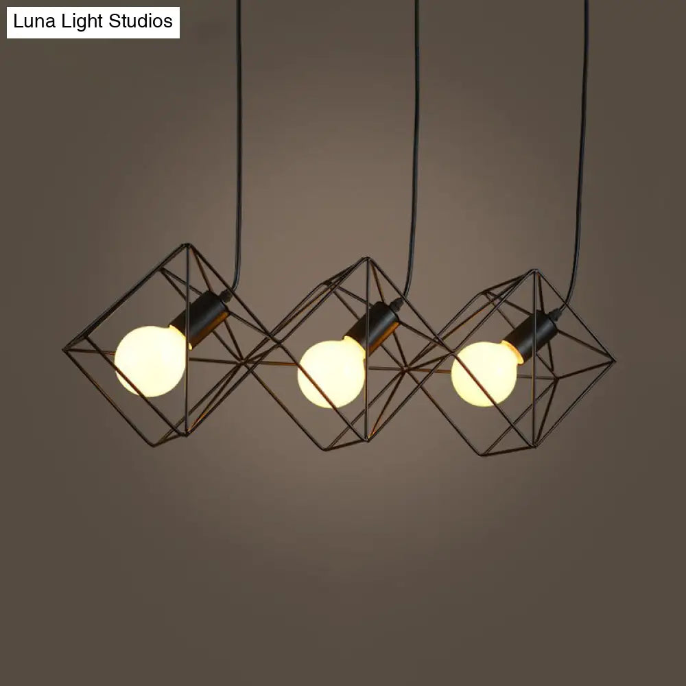 Iron Black Cube Cage Pendant Lamp - Industrial Style with 3 Bulbs, Multiple Hanging Lights