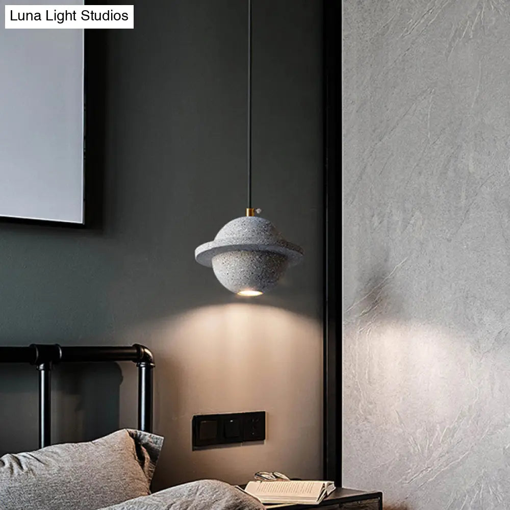 LED Planet Shaped Cement Hanging Lamp: Stylish Single-Bulb Pendant Light for Bedroom