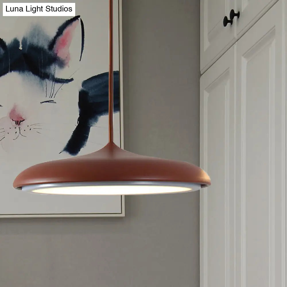 Modern Metal Disk Ceiling Pendant Light - 10"/16" Diameter - 1 Light - White/Pink/Yellow - Warm/White Hanging Lamp