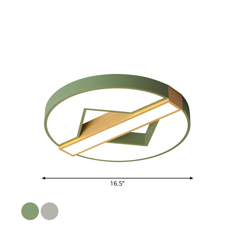 LED Macaron Green/Grey-Wood Bedroom Ceiling Light - 16.5"/20.5" Flushmount with Round Acrylic Shade, Warm/White Light