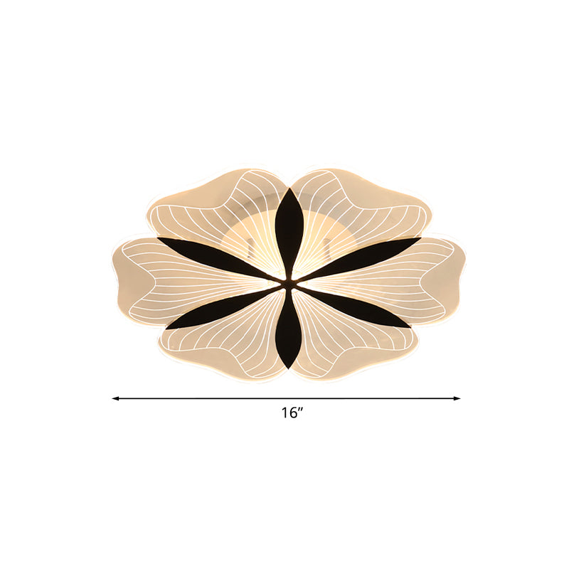 Minimalist Black Floral Flush Mount LED Ceiling Light for Bedroom - White/Warm Light Option