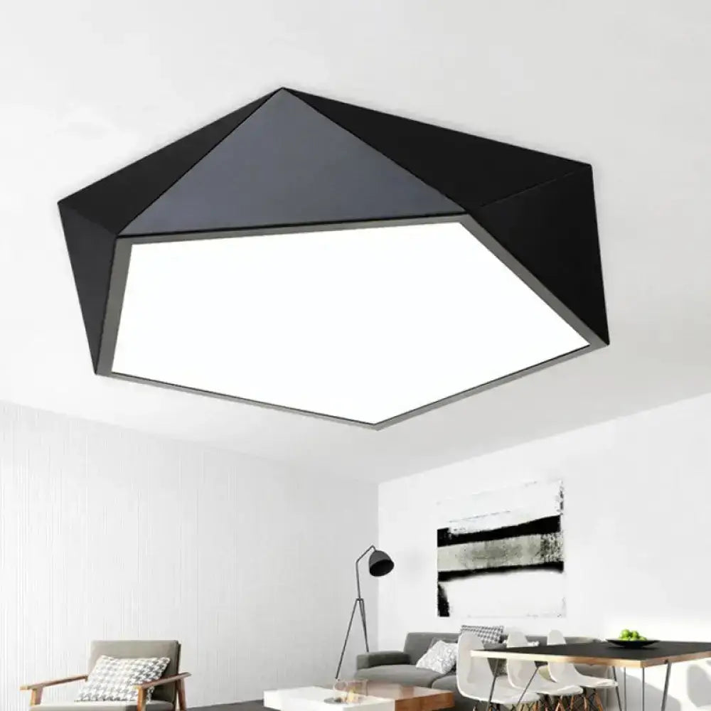 Pentacle Ceiling Lamp - Black/White Faceted Nordic Design, LED Acrylic Flush Mount Lighting, 16.5"/20.5" Wide, Warm/White Light
