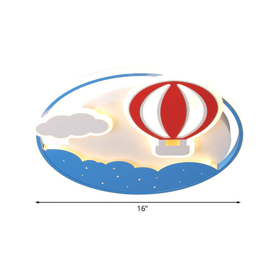 Blue Hot Air Balloon Led Flushmount Ceiling Light Fixture For Kids Nursery - 16/19.5 Wide / 16