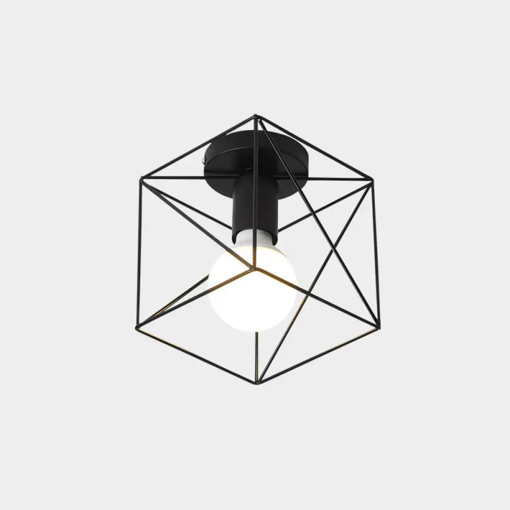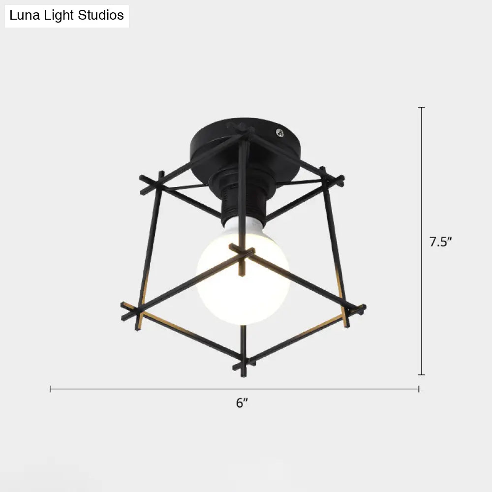 Industrial Metal Flush Ceiling Light Fixture - Cage Style, Small Aisle, 1 Head Black Flushmount Lighting