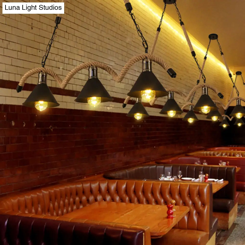 Rustic Metal Cone Island Ceiling Light with Rope and Chain - Brown