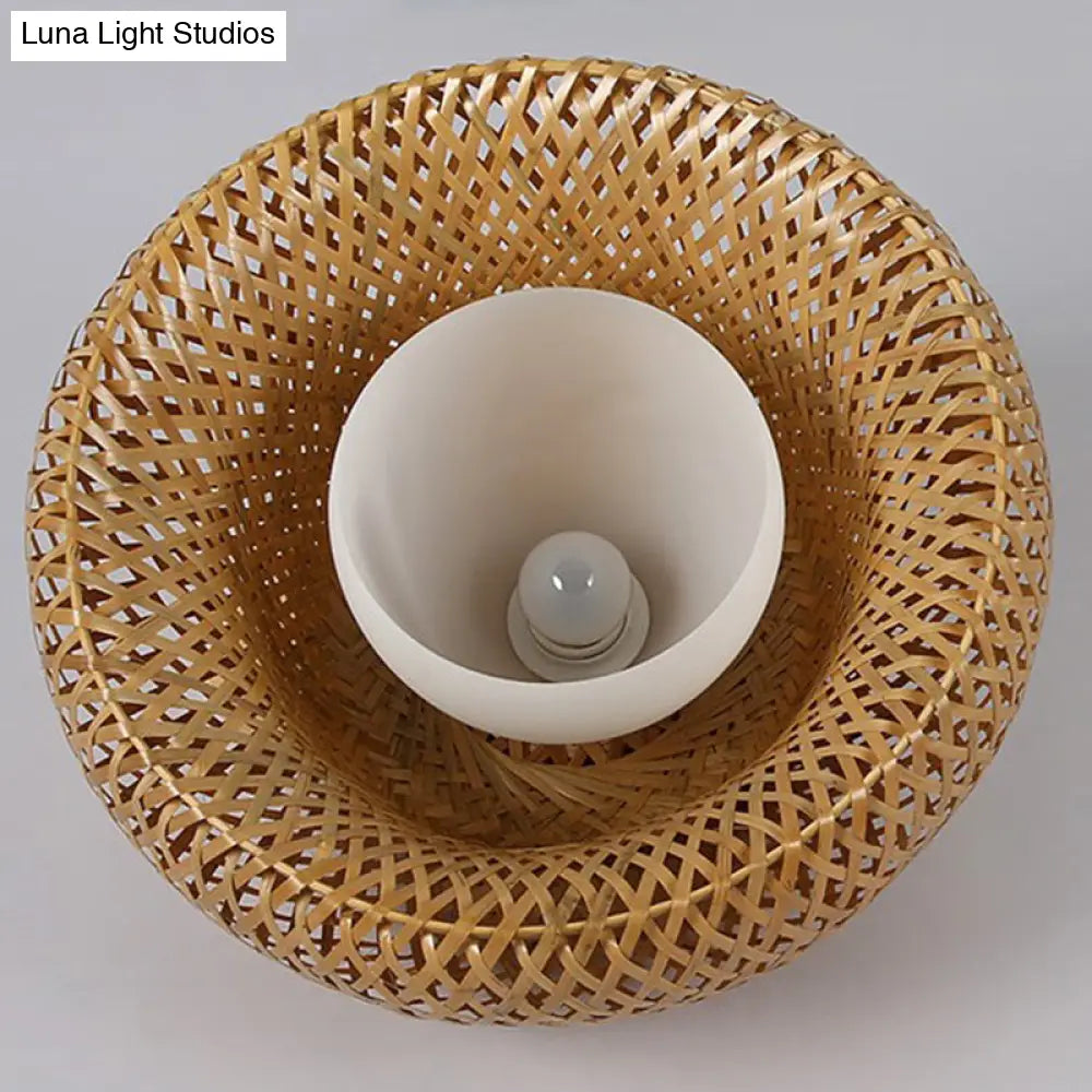 Bamboo Double-Decker Pendant Light with Milk White Glass Shade - Perfect for Restaurant Aisles