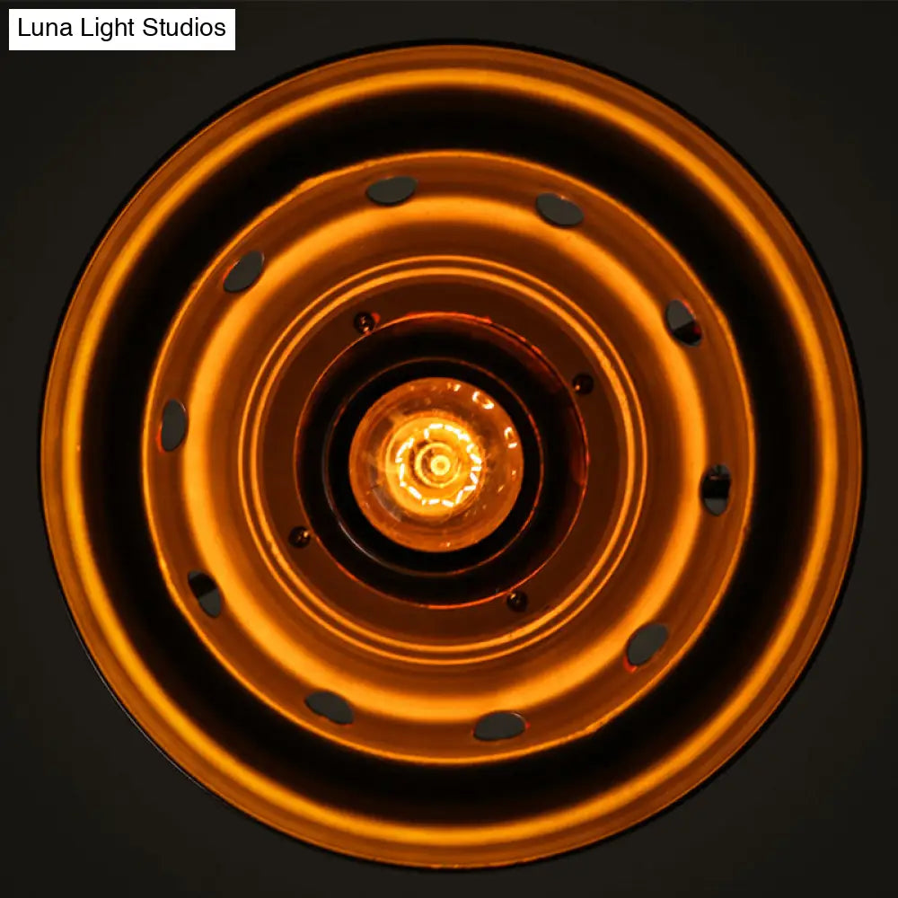 Rustic Barn Pendant Light with One Hanging Wrought Iron Fixture and Hole Design in Weathered Copper