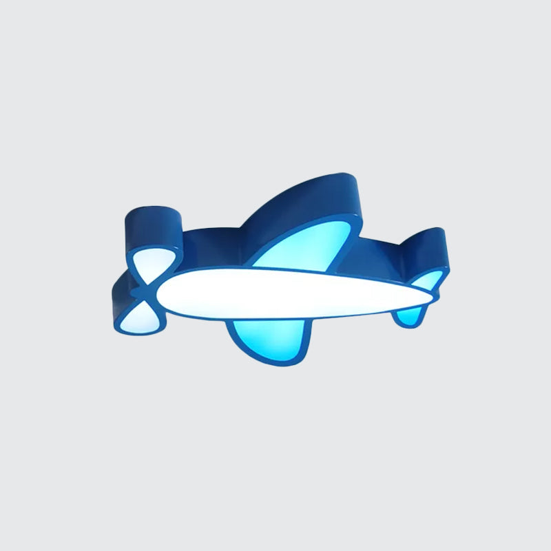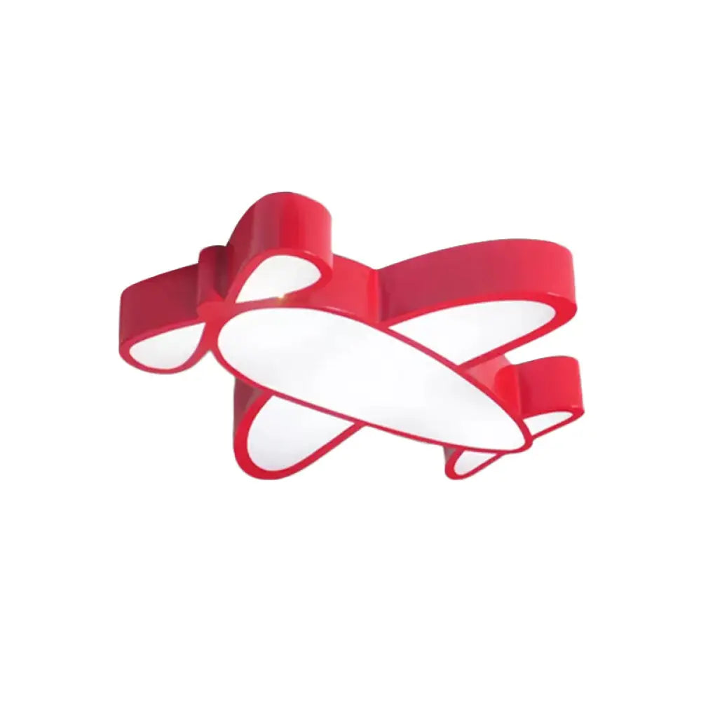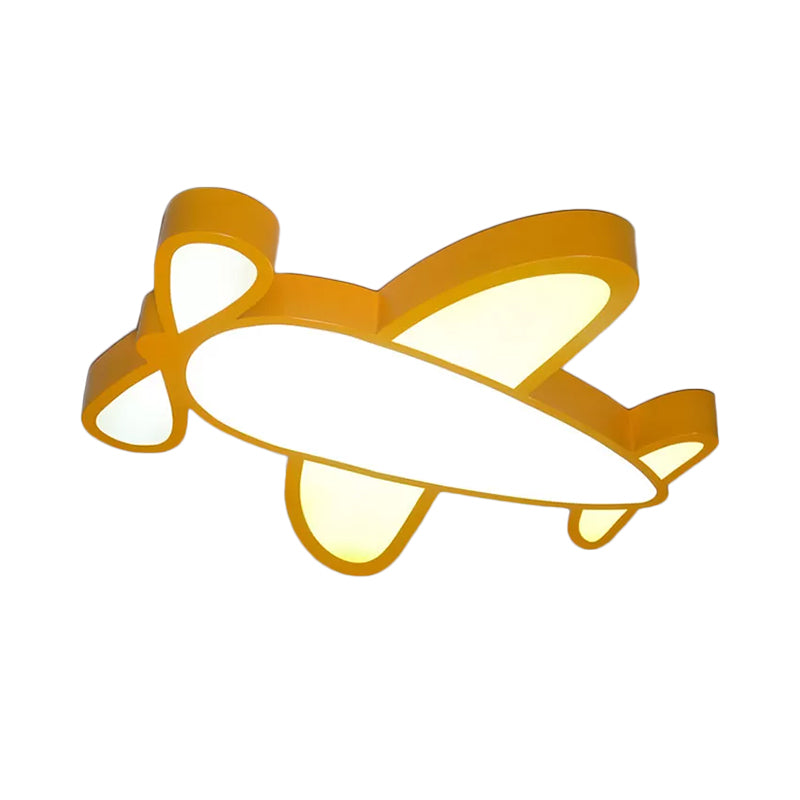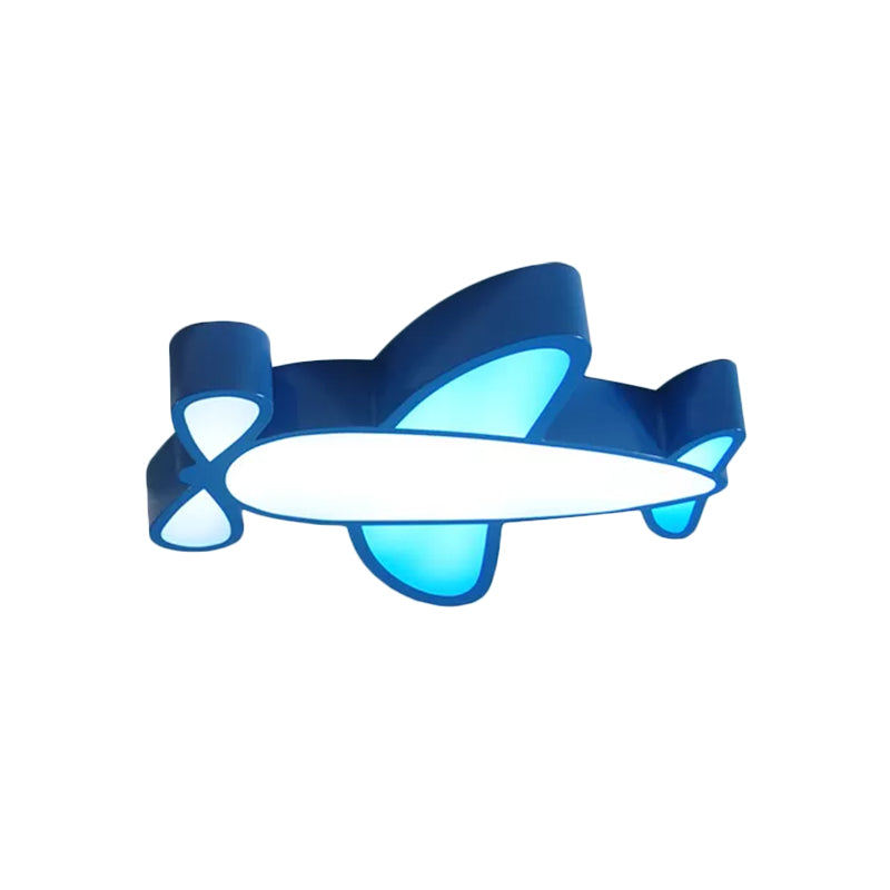 Kids LED Flush Light Fixture with Battle-Plane Design - Acrylic Shade in Red/Yellow/Blue - Warm/White Light