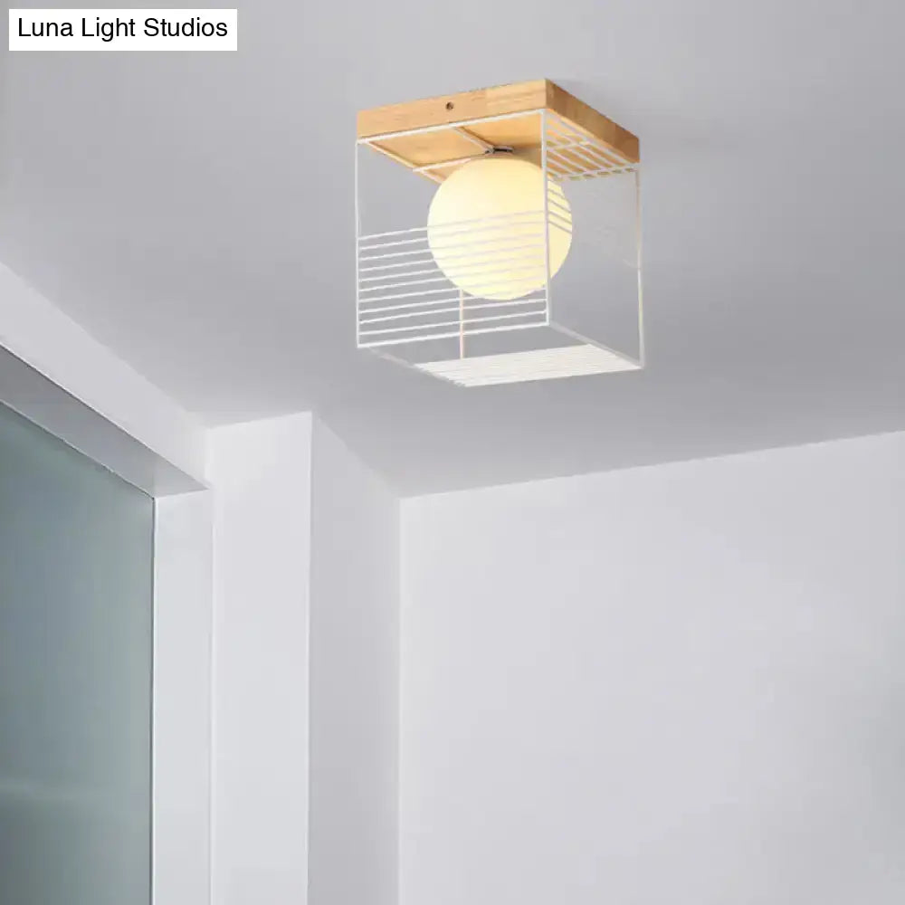 Modern Geometric Wooden LED Bedroom Flush Ceiling Light with Beige Acrylic Shade
