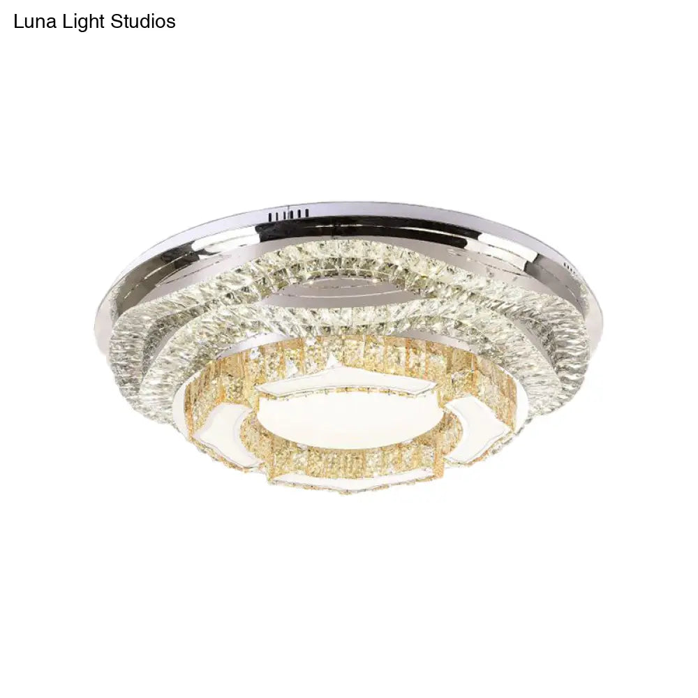 Modern LED Crystal Dome Flush Mount Ceiling Light in Chrome with Star/Gyro Pattern for Living Room - Stylish & Energy-efficient
