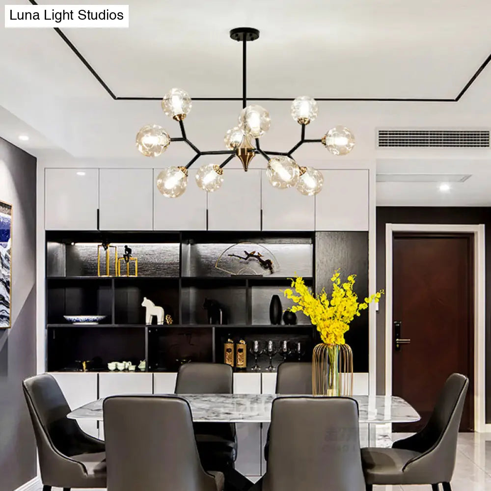 Nordic Bubble Hanging Lamp Kit - Clear/Amber/Smoke Gray Dimpled Glass Chandelier - Ideal for Dining Room - 6/10 Heads