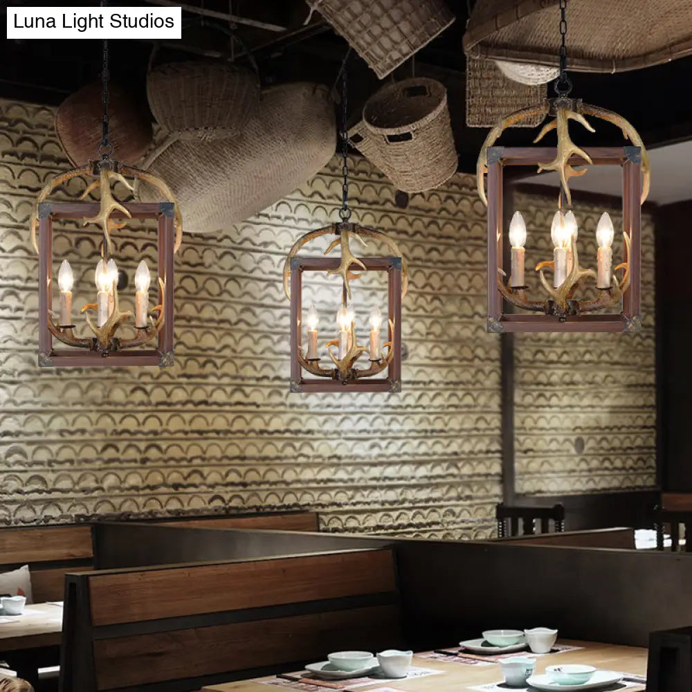 Rustic Metal Rectangle Frame Pendant Chandelier - Red Brown Finish, 4/8 Lights - Ideal for Dining Room Lighting