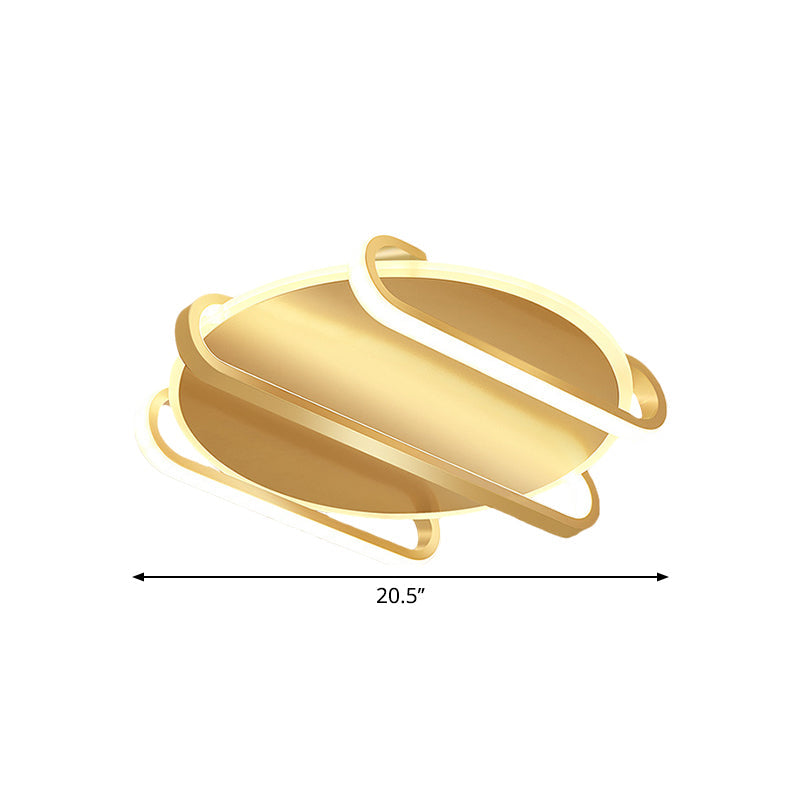 Contemporary Metal Round & Oval Flush Mount Lamp - 16.5/20.5 Led Gold Ceiling Warm/White Light /