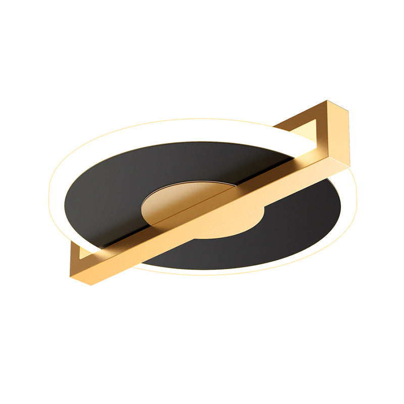 This product is a small, disk-shaped, thin flush light fixture designed in a retro style. It is made of metal and available in black with gold trim/white with gold trim, or all-gold versions. It includes an LED bulb and is suitable for mounting close to the ceiling. The light casts a soft glow and is ideal for use in bedrooms, hallways, or other small spaces. It has a voltage of 220-240V or 110-120V and a bulb base of SMD.