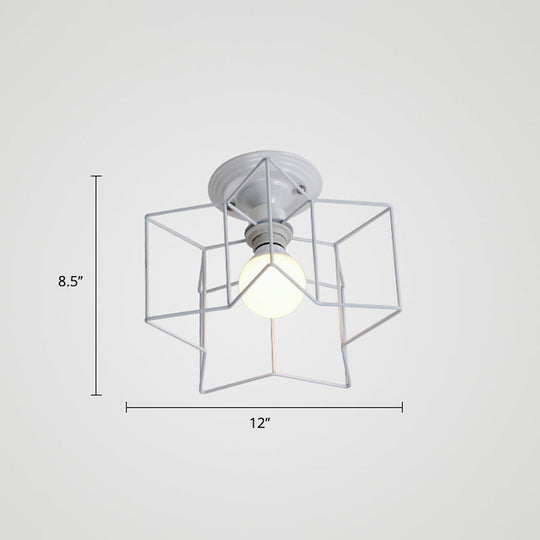 Vintage Metal Star Shaped Bedroom Ceiling Lamp - Semi Flush Mount With 5 Bulbs / White