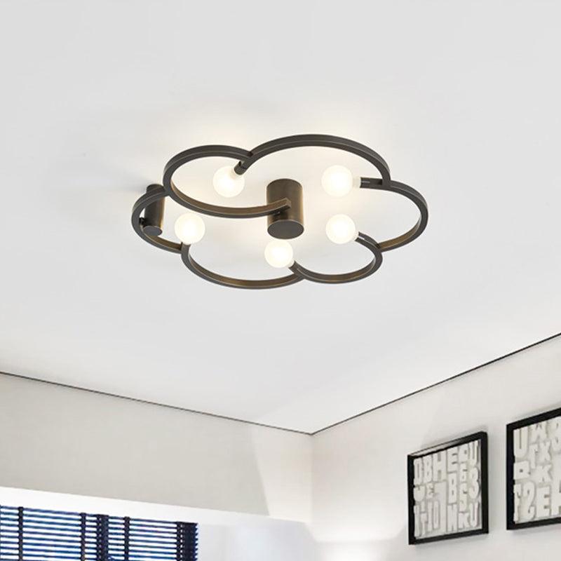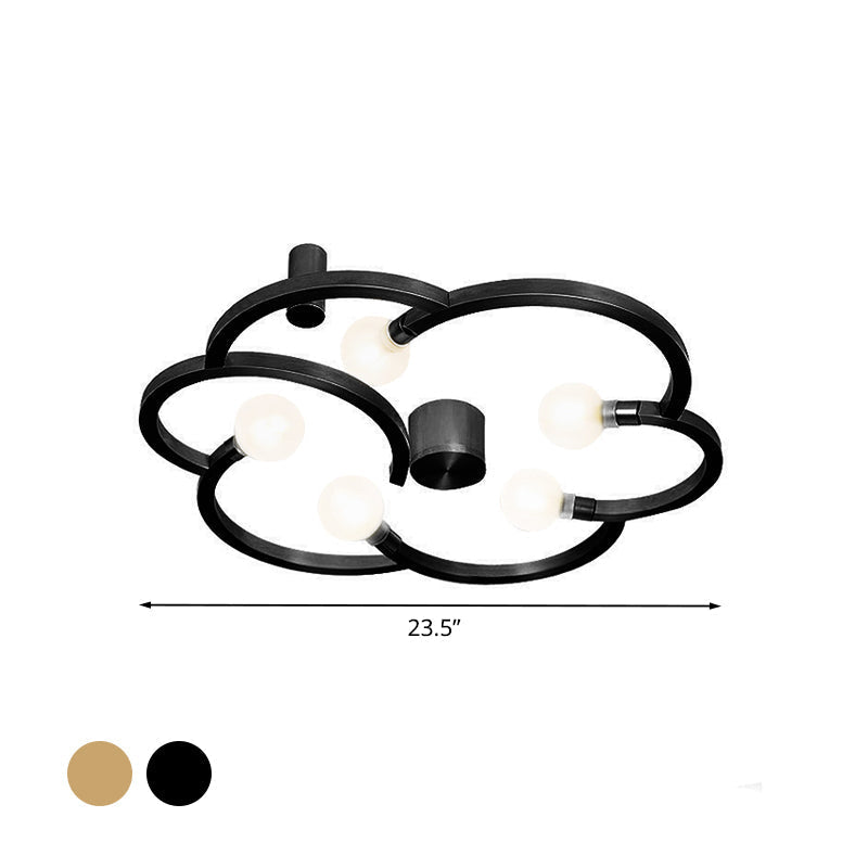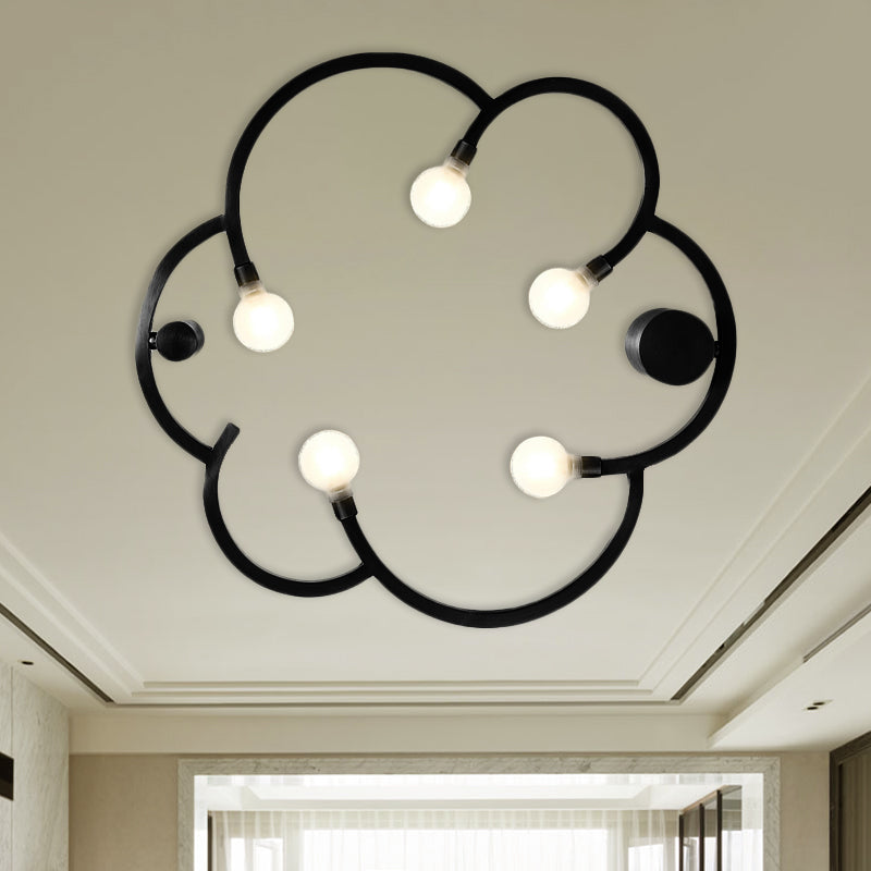 Vintage Flower Cage Iron Semi-Flush Mount Light Fixture for Bedroom - Black/Gold Finish, 5 Bulb Bare Bulb Design