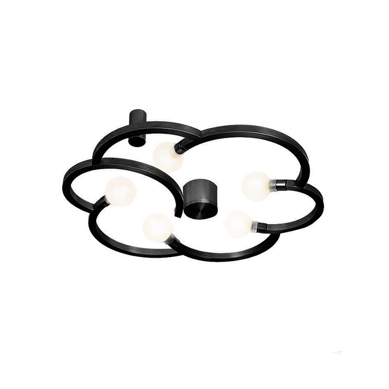 This exquisite and stylish vintage-style ceiling light will turn your bedroom into a lush, inviting space. The traditional-style semi-flush mounting fixture features five bulbs surrounded by a beautifully designed flower cage and is finished in black and gold, giving your room a relaxing aura. The light fixture is crafted from top-notch metal and can be installed with ease.