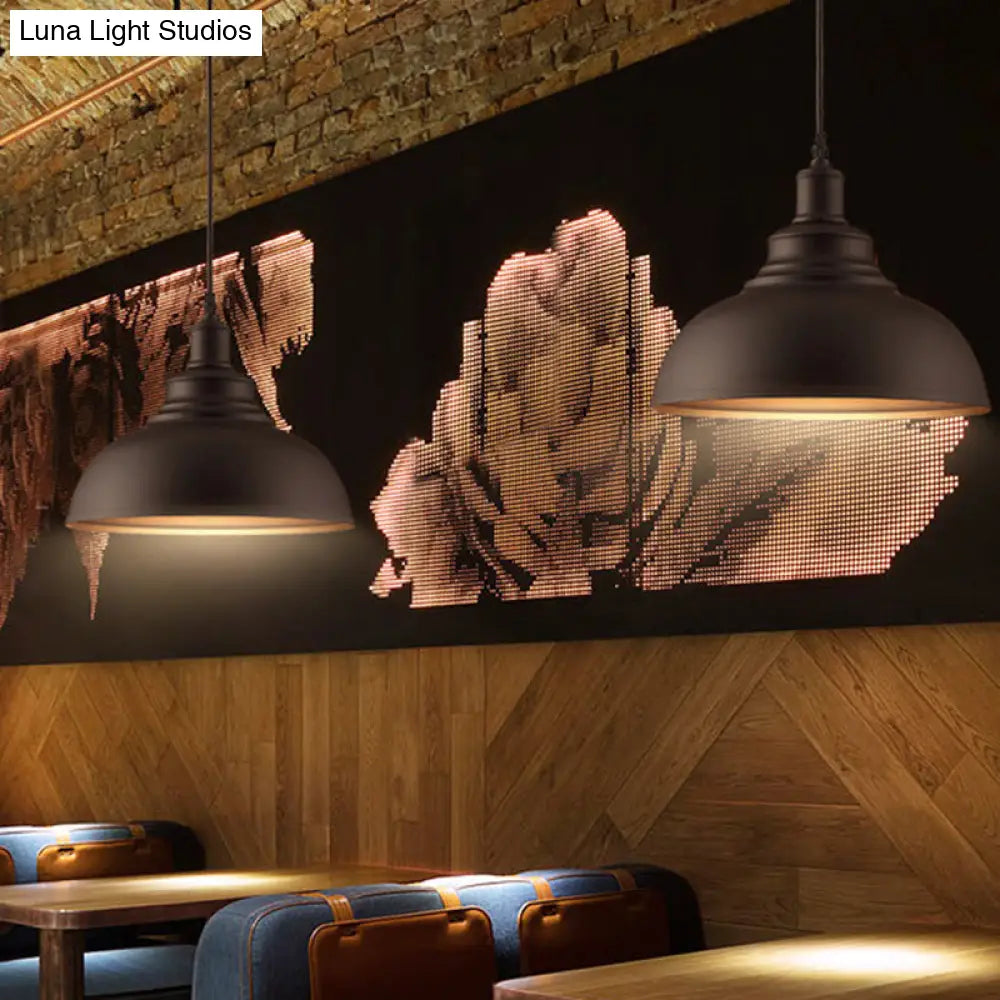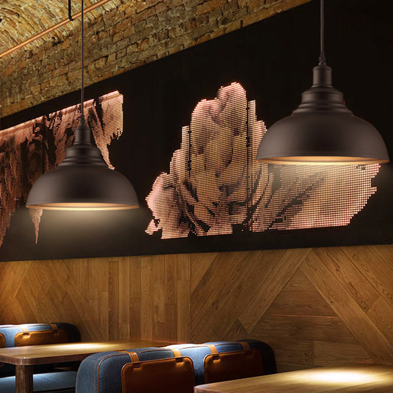 Vintage Metal Bowl Pendant Light with Painted Shade - Hanging Ceiling Fixture