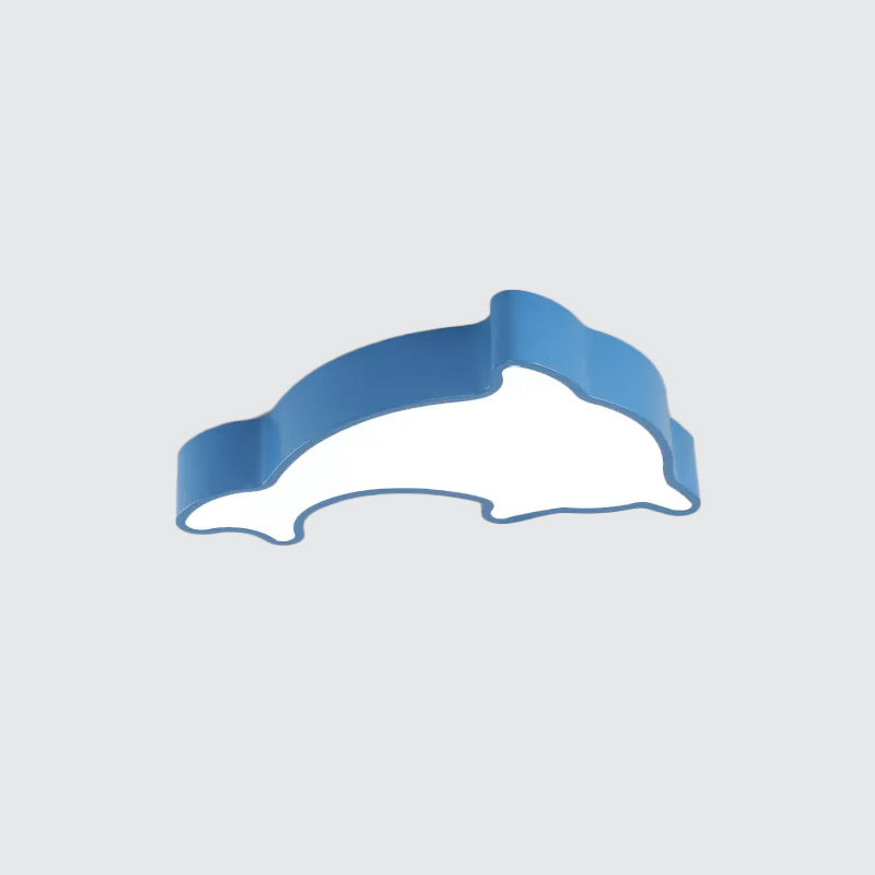 Dolphin Led Ceiling Light For Childrens Bedroom - White/Red/Yellow Acrylic Flush Mount Fixture Blue