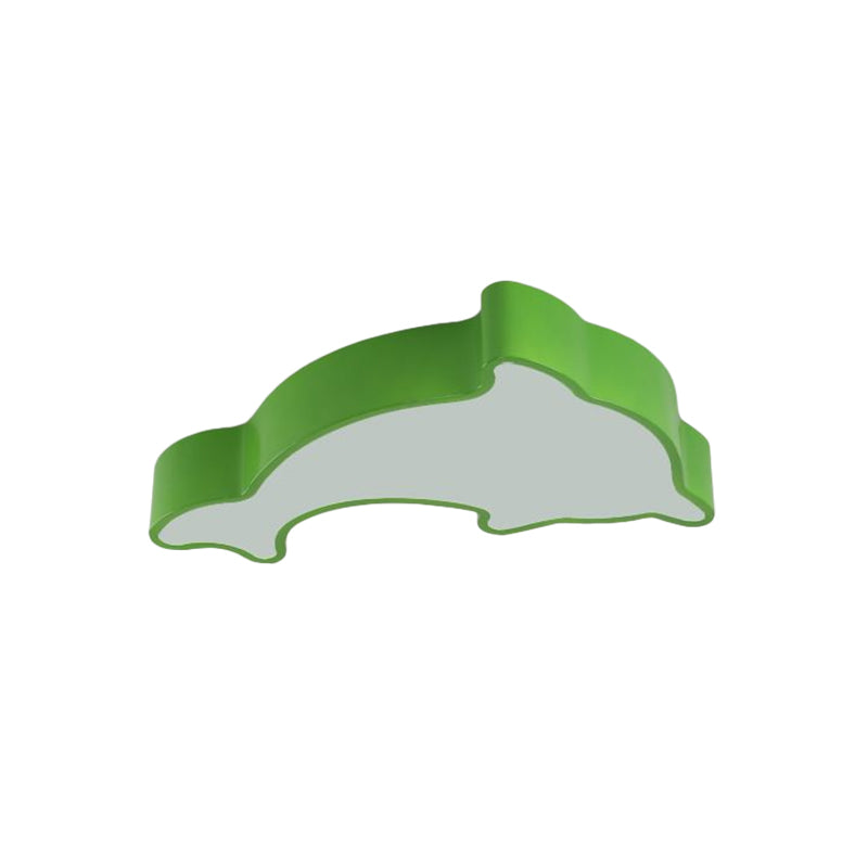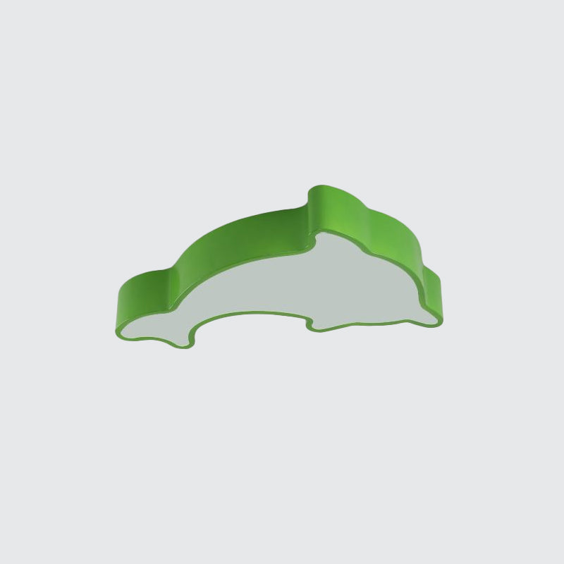 Dolphin Led Ceiling Light For Childrens Bedroom - White/Red/Yellow Acrylic Flush Mount Fixture Green