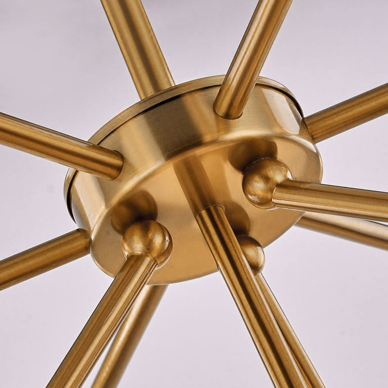 The metal body and frosted/clear glass shades come together to create a modern, elegant look. The direction of the shade is adjustable and can also be up/down illuminated. The product is well-crafted with no bulbs included. There are one tier and seven/nine lights to create a brilliant atmosphere.
