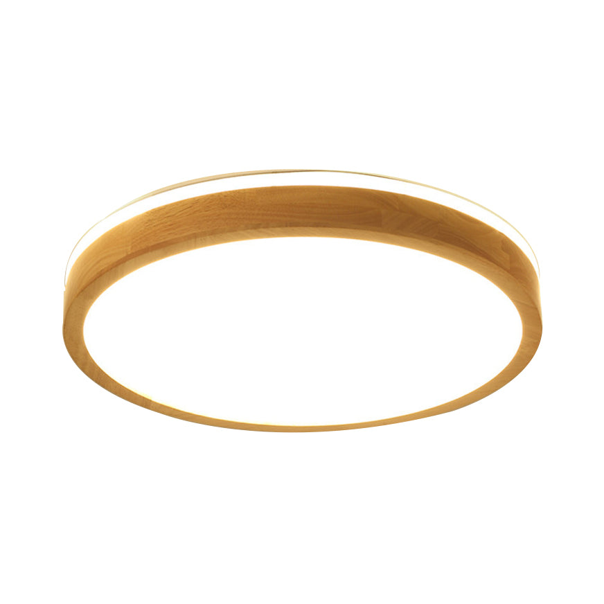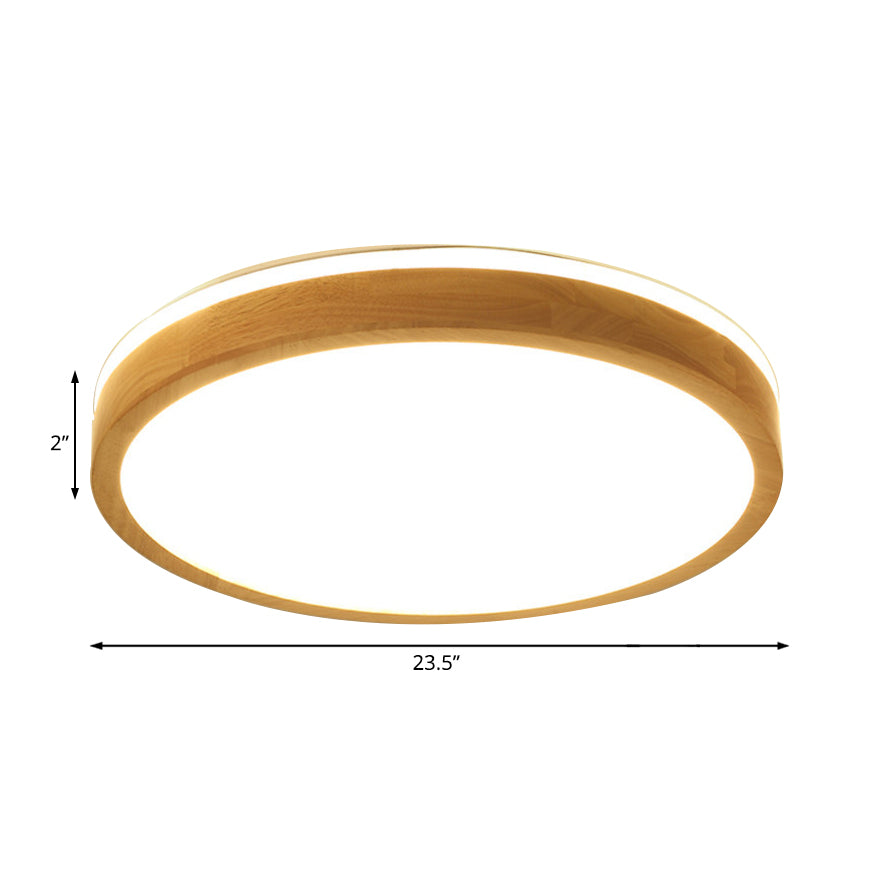 Modern Round Wooden 1-Light LED Flush Mount Ceiling Fixture with Frosted Diffuser - 3 Sizes Available