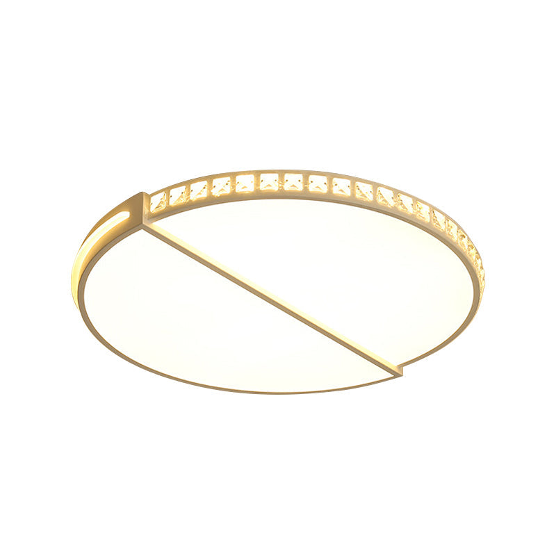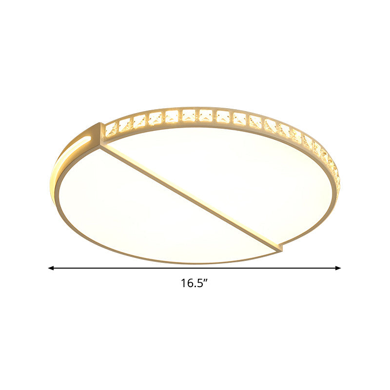16.5/20.5 Simple Metallic Led Flush Mount Ceiling Light In Warm/White/3 Color With Crystal Accent -