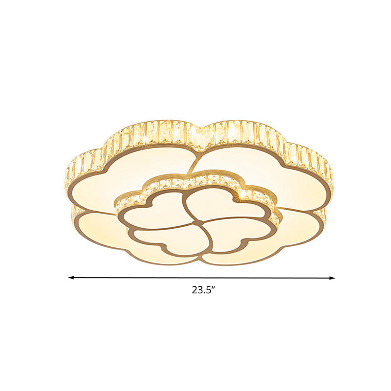 Modern Petal Crystal Led Flush Ceiling Light In White - 19.5/23.5/31.5 For Bedroom / 19.5 B