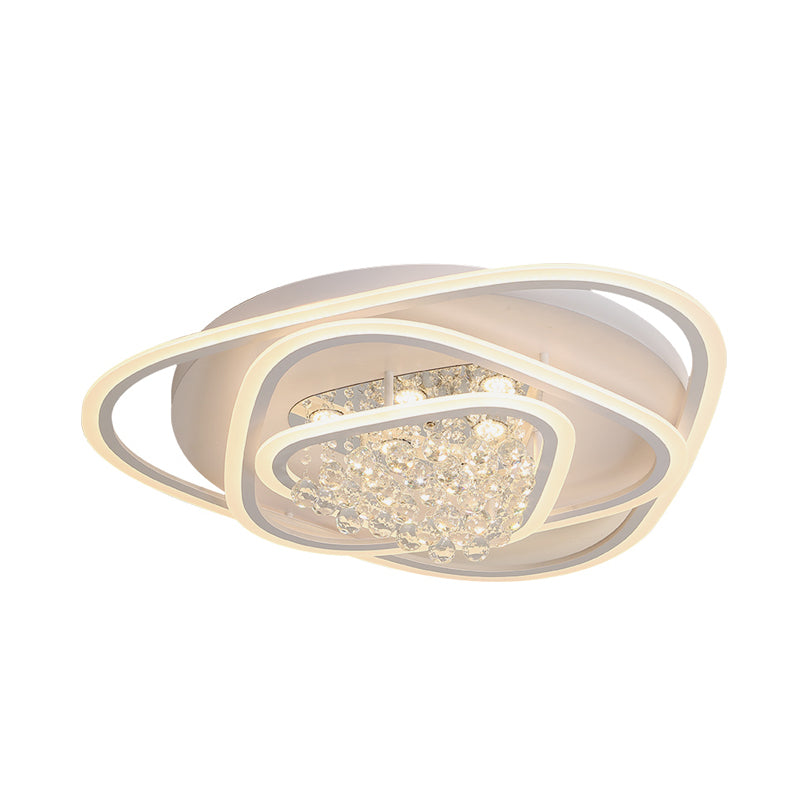 This LED Triangle Flush Mount Lamp is sure to add an eye-catching element to any room, especially bedroom and living spaces, and is ideal for modern to contemporary interiors. The crystal material is durable and still manages to bring a unique shine to the fixture, while the white finish complements any decor. Plus, this product is easy to install.