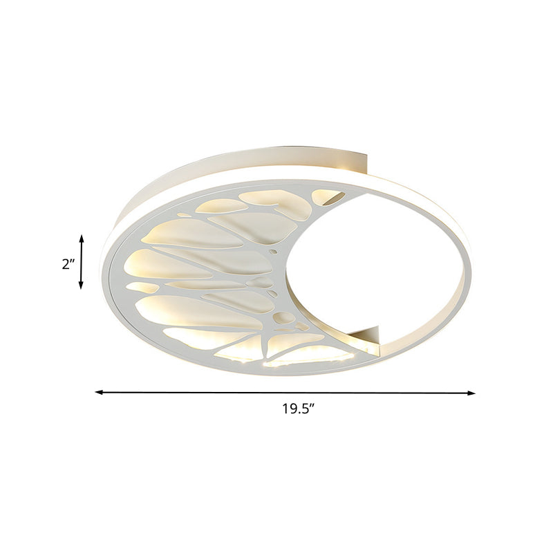 White Acrylic Moon Flush Light - Led Ceiling Fixture For Contemporary Bedroom Decor (16/19.5 Wide)