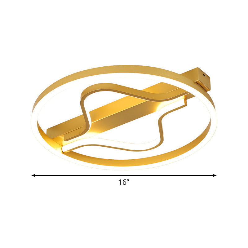 Aluminum Flush Mount Ceiling Light - Modernist Gold Led Surface Lamp (16/19.5) With Ripplet Central