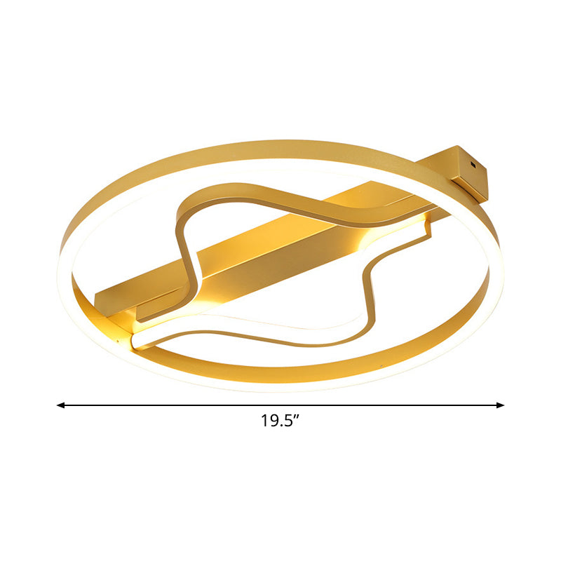 Aluminum Flush Mount Ceiling Light - Modernist Gold Led Surface Lamp (16’/19.5’) With Ripplet