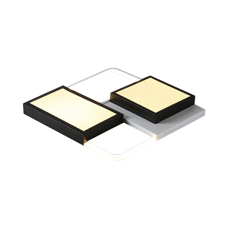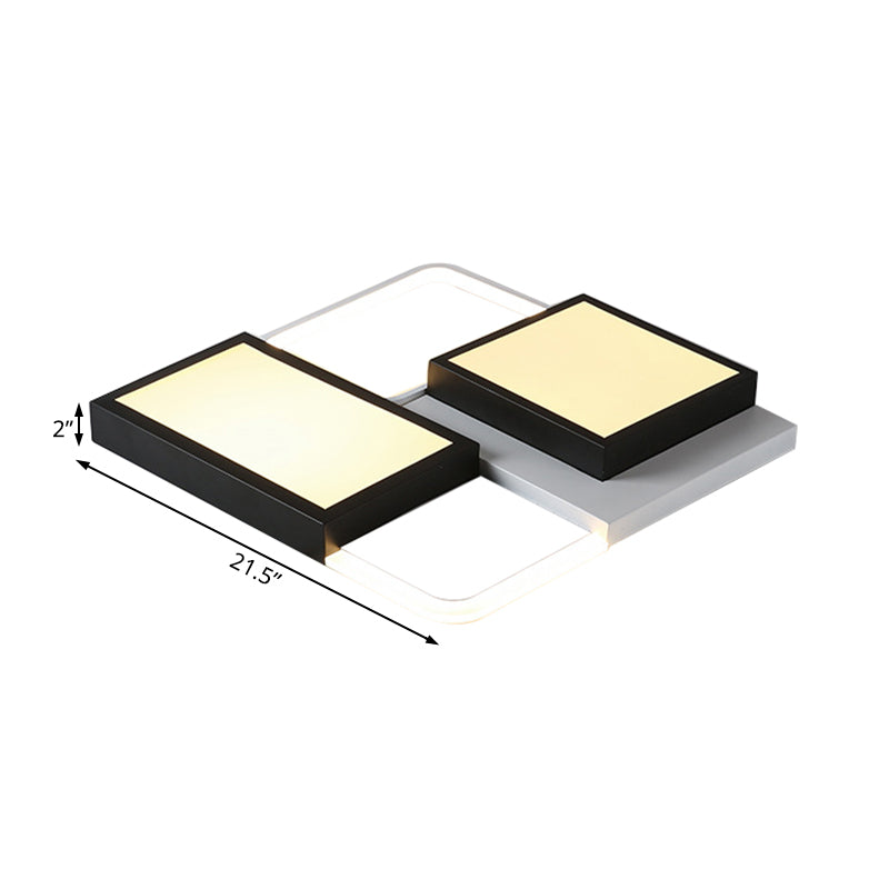 Modernist LED Flush Mount Lamp, Black & White, 21.5"/35.5" Wide Metal Ceiling Fixture for Living Room, White/Warm Light