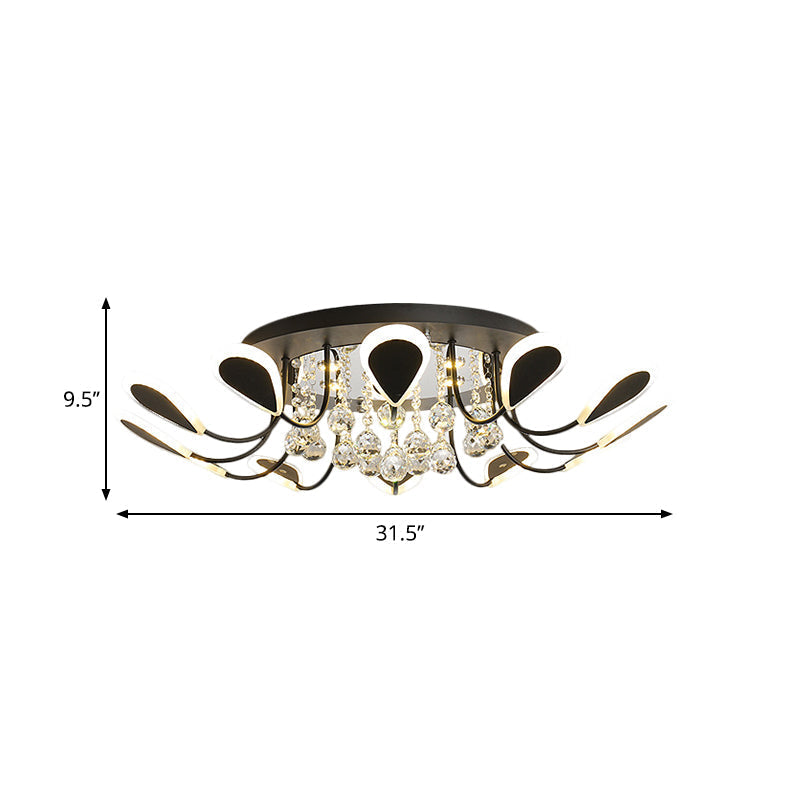 Teardrop Flushmount Bevel Cut Glass Ceiling Fixture - Modern Style Black/White 10/12 Bulbs