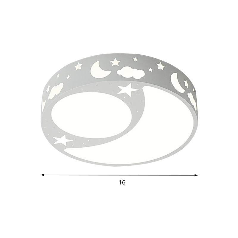 Kids Cartoon Led Ceiling Light With Moon Acrylic Fixture - Perfect For Bedrooms White / 16