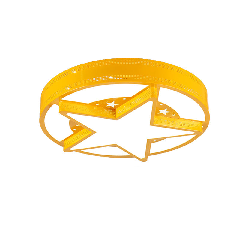 The Contemporary Circle Flush Mount Light with Star Metal & Acrylic Ceiling Lamp for Bathroom is a 19.5 to 23.5 inch ceiling light fixture that comes in pink, yellow, and blue colors. The light also has a white, third gear color temperature. This light is perfect for a kids room or nursery and has a maximum bulb wattage of 39 watts or less. This light is made out of metal and is a flushmount light fixture. This light requires a voltage of 110-120 volts or 220-240 volts. This light's bulb base is SMD and the light type is LED.