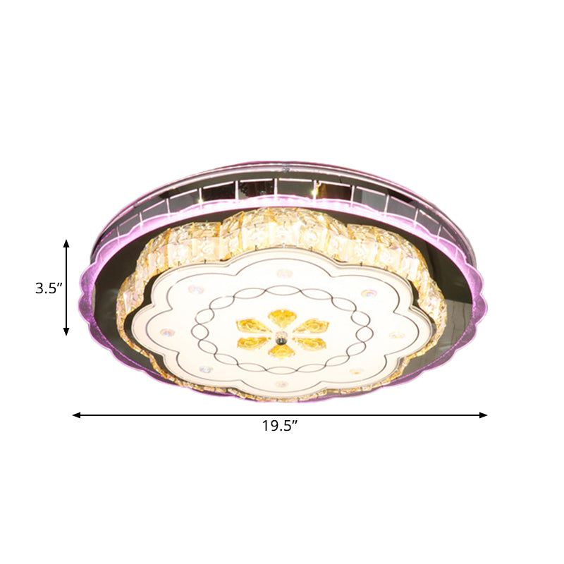 Modern Crystal Block LED Flush Ceiling Lamp in Stainless Steel with Floral Design