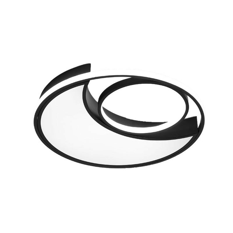 This is a LED flush mount light made from acrylic with a modern design. It is black in color and comes in two sizes, 19 to 20 inches. The light has a stepless dimming feature and a remote control. It is also energy efficient with a long lifespan.