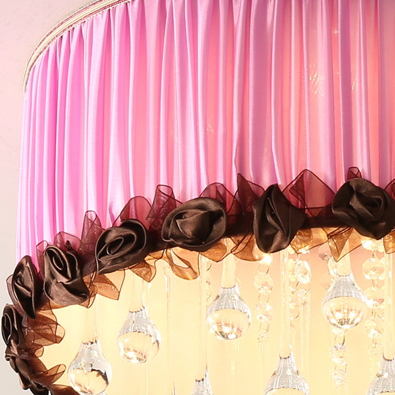 Modern Waterdrop Crystal LED Ceiling Light Fixture - Orange/Pink/Purple Drum Flush Mount Lamp