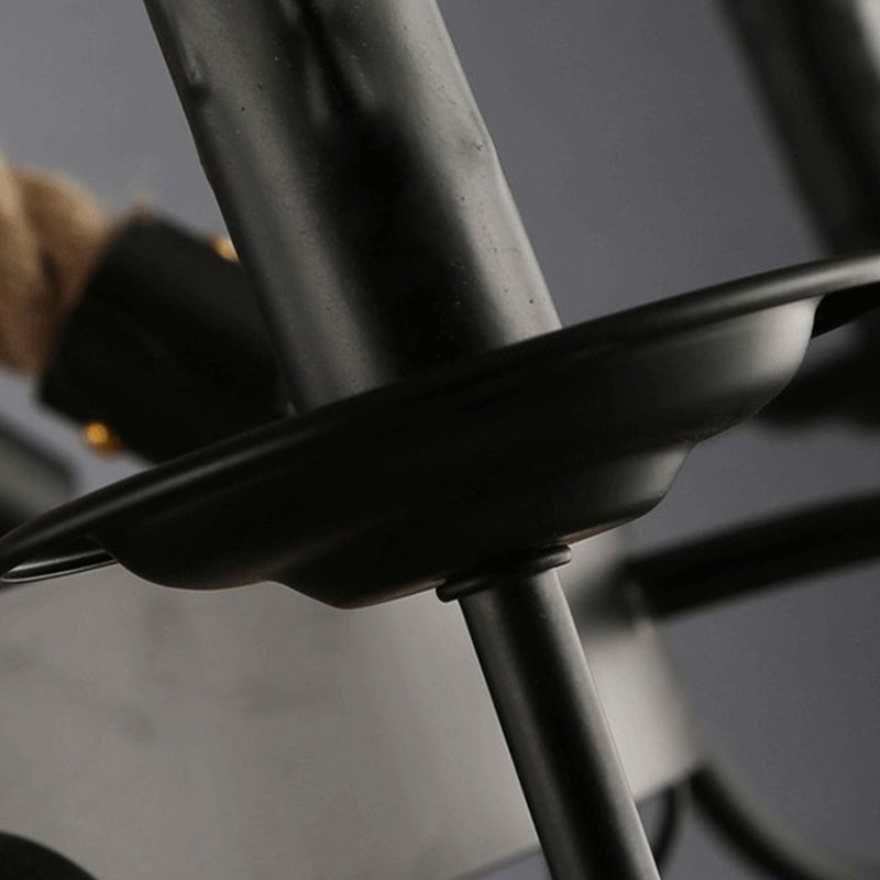 Loft Style Candelabrum Chandelier with 8 Bulbs and Hemp Rope - Black Hanging Lamp for Living Room