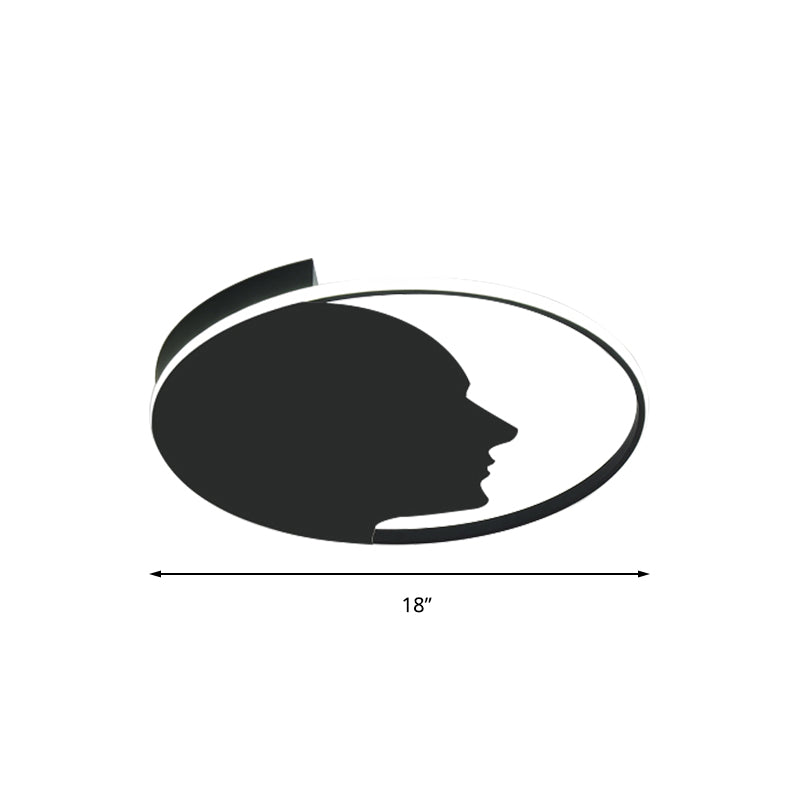 This modern LED ceiling light is an ideal addition for an adult bedroom. Featuring a charming man's face design, this flush mount lamp is constructed with high-quality acrylic to make sure it's durable and reliable for long-term use. With a size of 18" - 21.5" and a 2" high fixture, this lamp is perfect for contemporary settings. The matte black finish gives it a stylish look that matches any decor scheme.